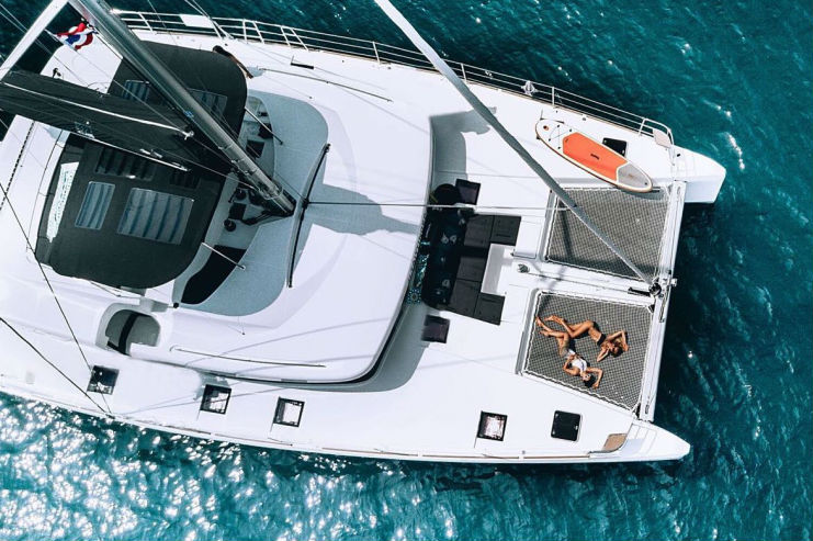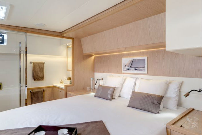 The Lagoon shipyard and yacht design partner VPLP have developed a new style for the next generation of Lagoons, starting with the 52. With its diamond-shaped vertical bows, contemporary styled hulls and levitated hardtop, and with a taller rig placed further aft than earlier models, the latest Lagoon 52 stands out in the charter market. Below decks the Lagoon 52 oozes quality, with its light airy feel and spacious well-appointed accommodation.